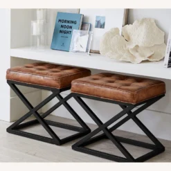 Pottery Barn Kirkham Tufted Leather Stool, Rustic