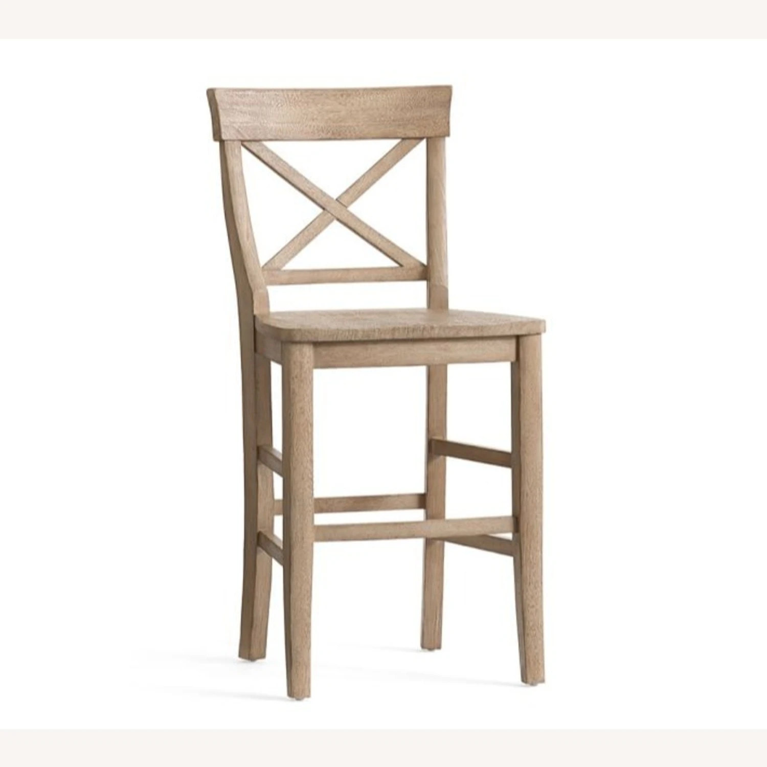 Seller’s Notes: Skilled artisans craft the Aaron Barstool from solid wood, carefully hand joining the X-shaped back for precise symmetry. Contoured seats and a curved back offer subtle flared detail.