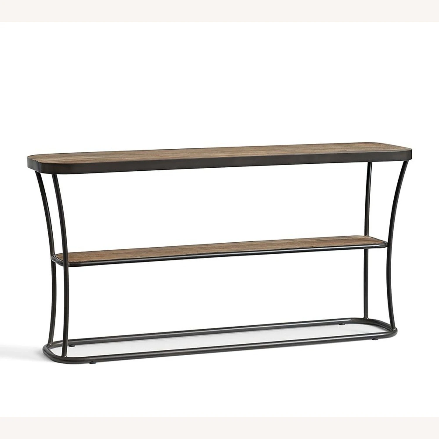 Seller’s Notes: Crafted of reclaimed, kiln-dried elm with a hollow rust-proof iron frame.