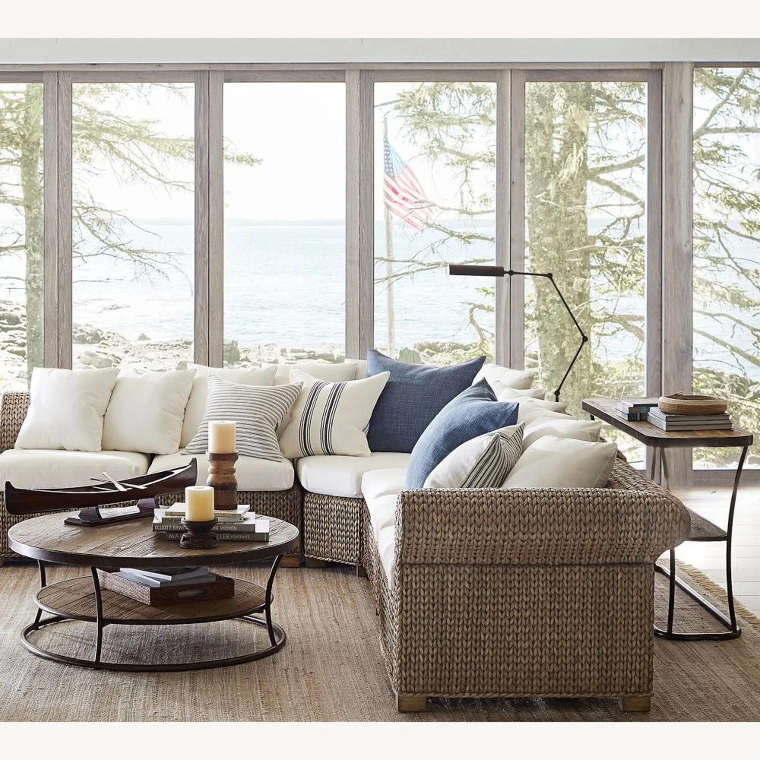 The reclaimed wood features variations inherent to salvaged materials such as a rustic distressed finish, visible nailheads, knots, hairline cracks and oil stains; which may result in hue variations, rubbed edges or other antique-like characteristics.
