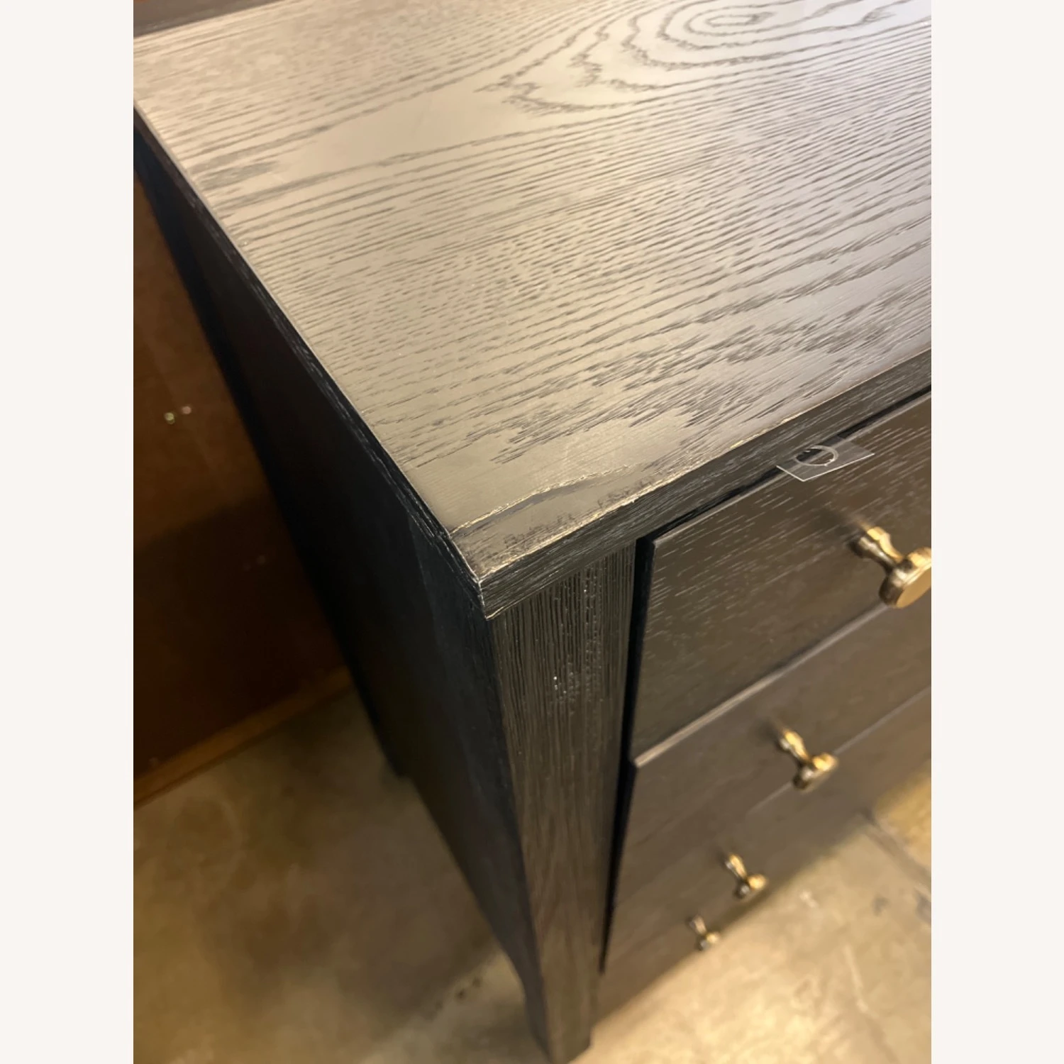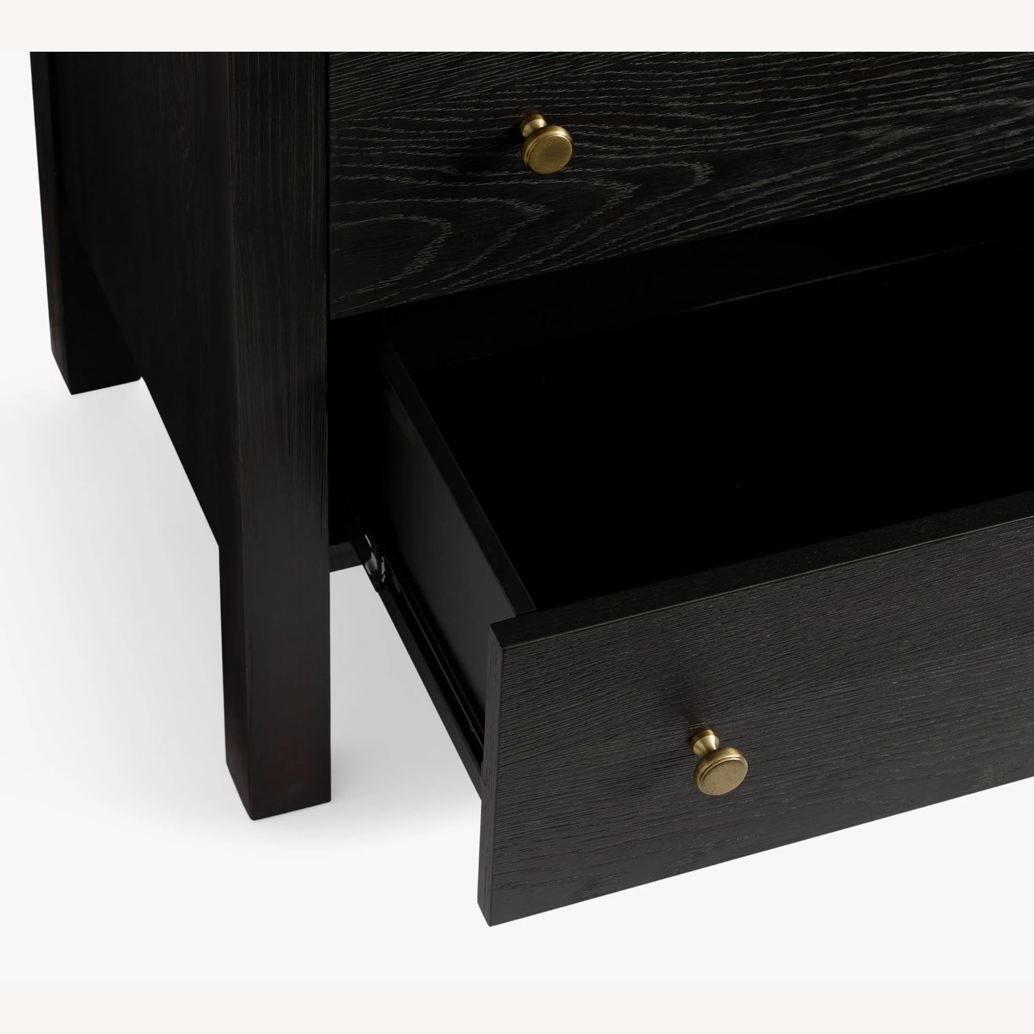 Seller’s Notes: Crafted of solid kiln-dried Poplar wood, Oak veneer and MDF with a Charcoal or Sienna Brown finish.