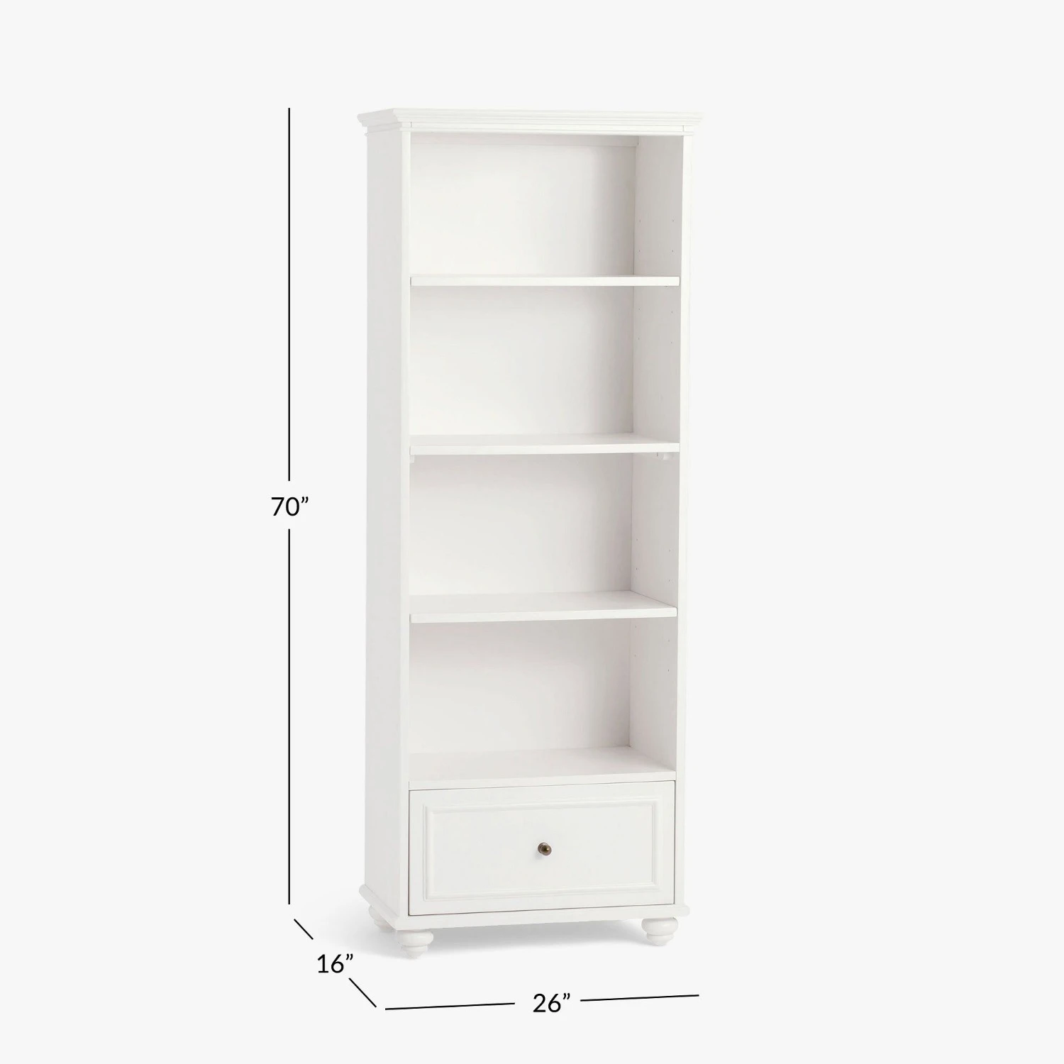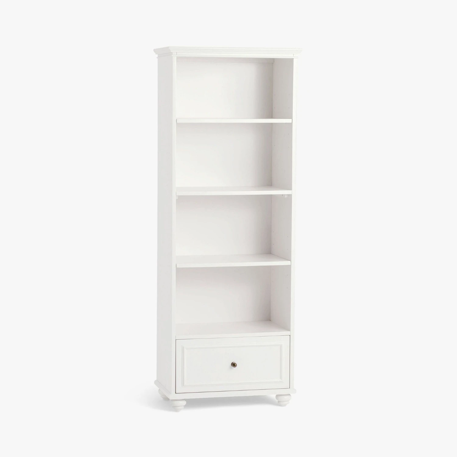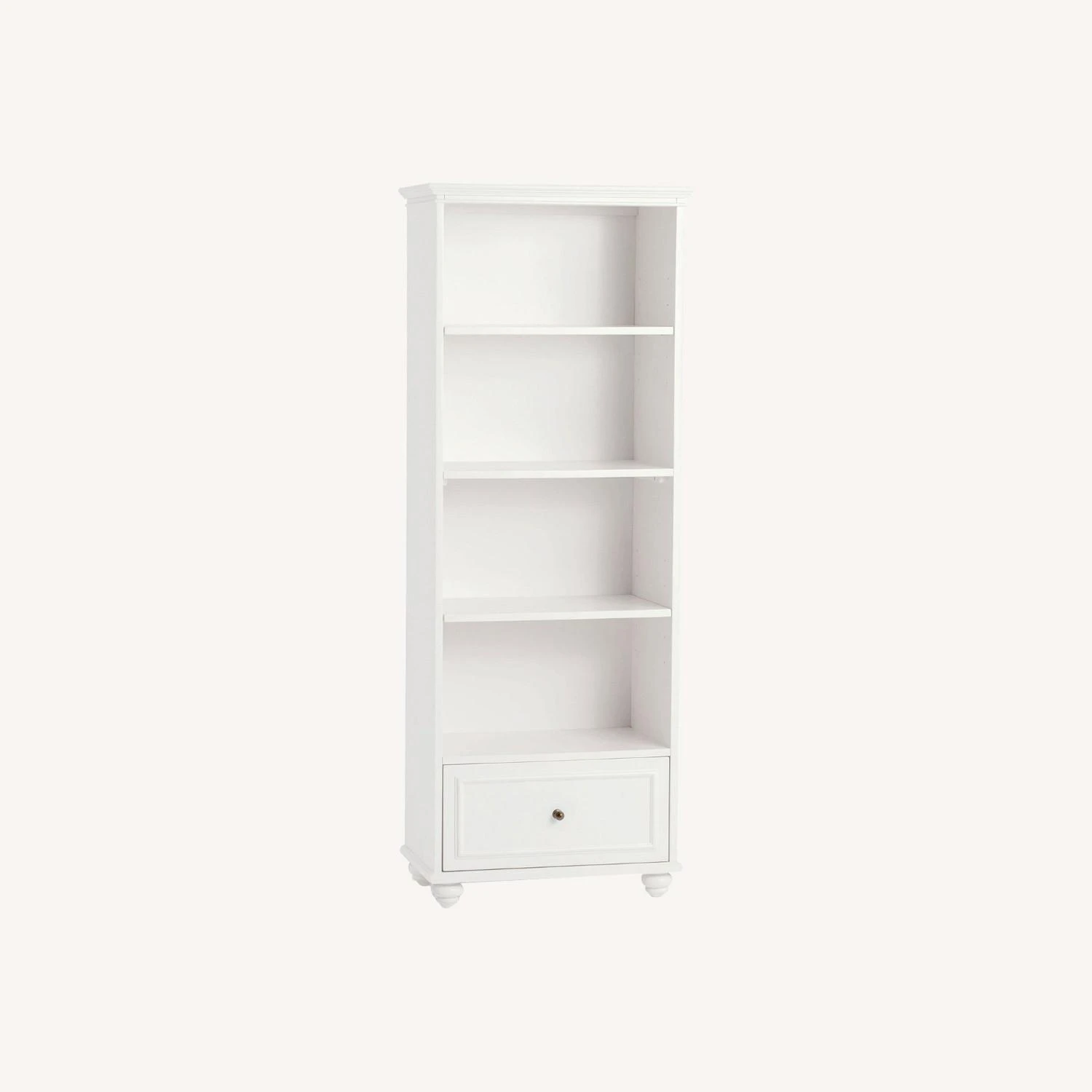 Seller’s Notes: Full of style and sophistication, this charming bookcase is designed with classic details including antique hardware and large bun feet. The Simply White finish offers a bright look that livens up any room.