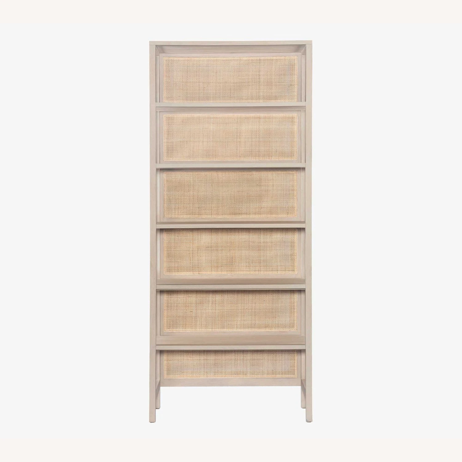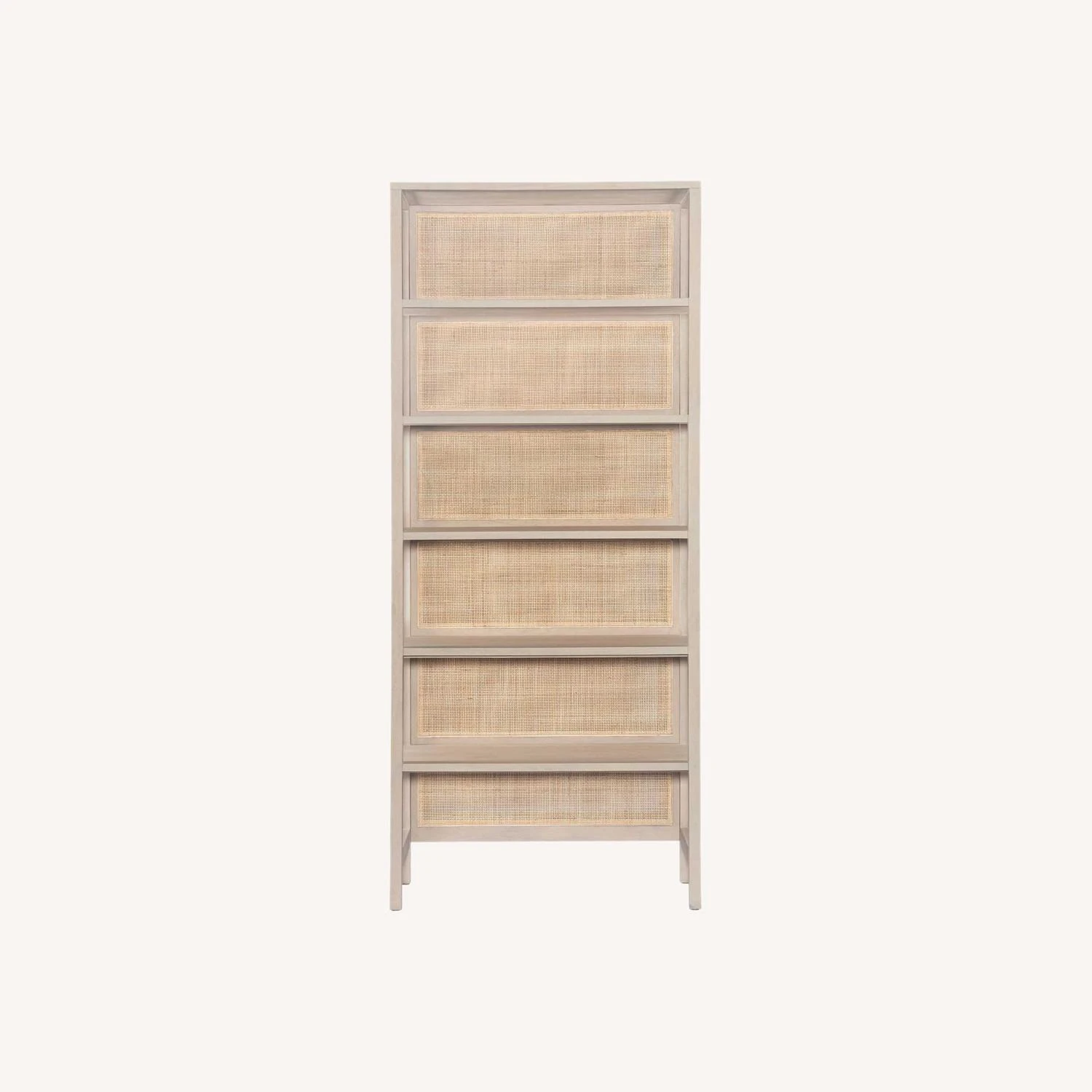 Seller’s Notes: Crafted of solid kiln-dried mango frame and top; natural cane and solid mango on the back panel.