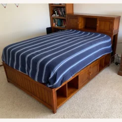 Seller’s Notes: As a disclaimer the bookcase has a deep crack in the back, which affects the structural integrity, a large and deep chip on the corner of the shelf in the front, several scratches, discolorations and may need adjustment as it was disassembled/not reassembled correctly.