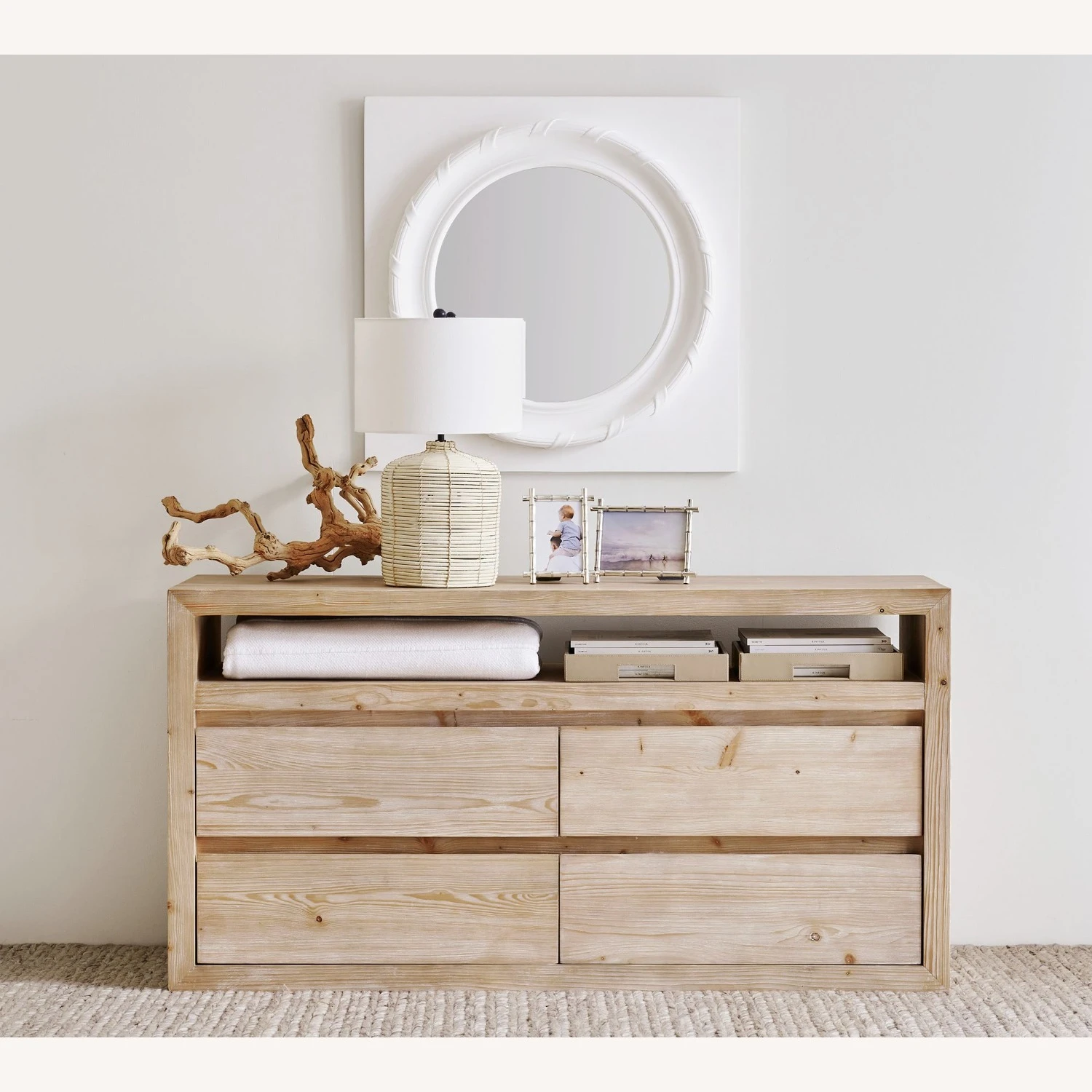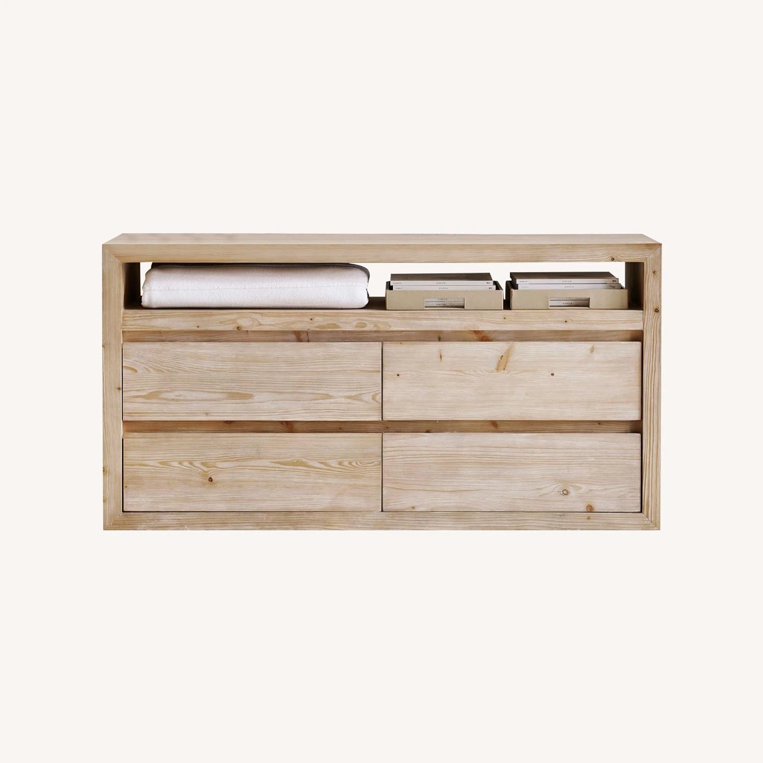Features 4 drawers and (1) shelf for storage.
