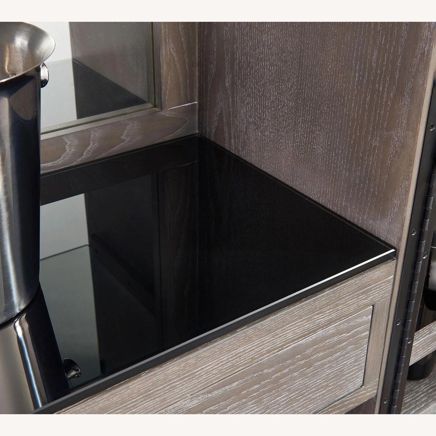 Features 2 fixed glass shelves, 8 stemware racks, 2 spacious drawers for storage, 14 wine bottle racks and a large mirror on the bar.