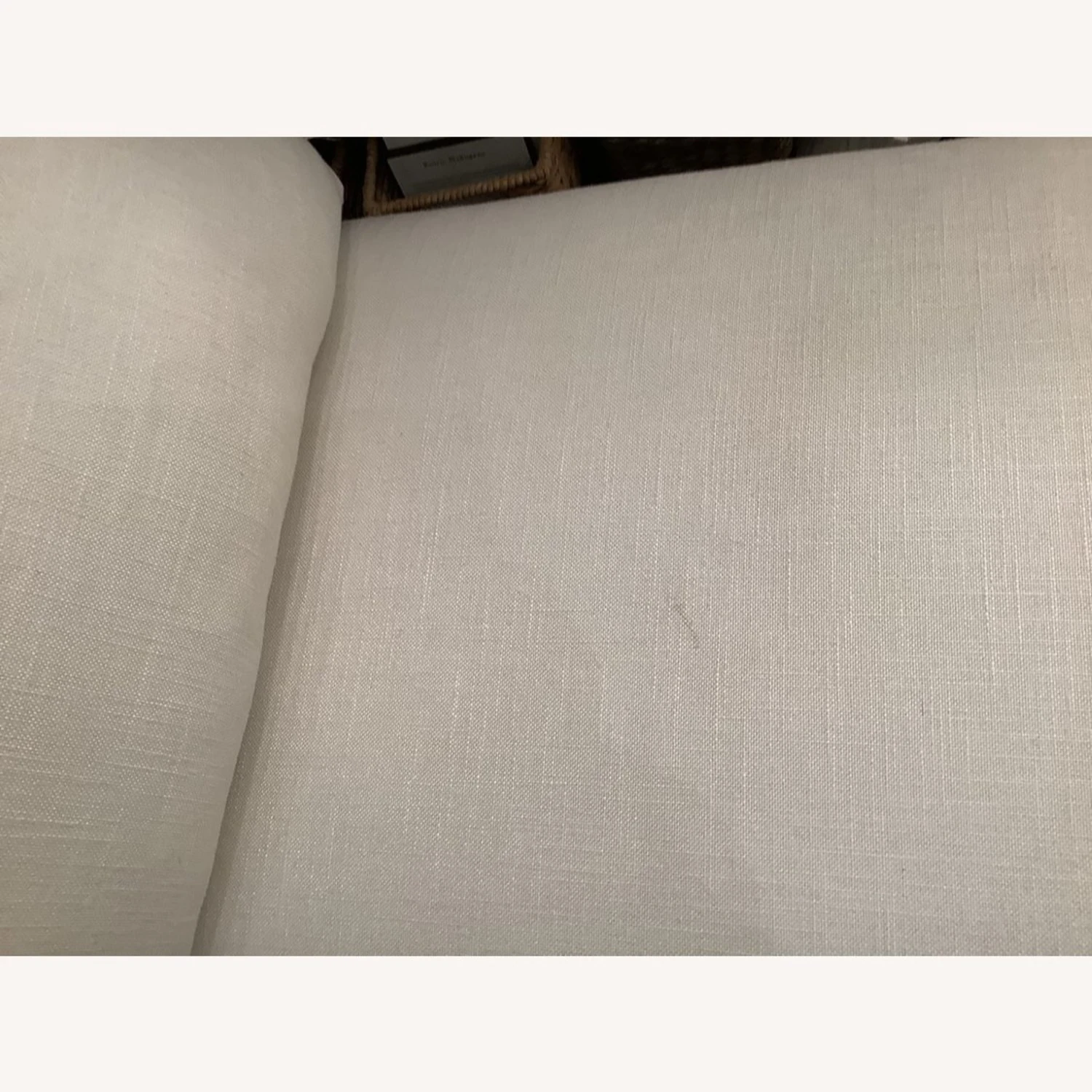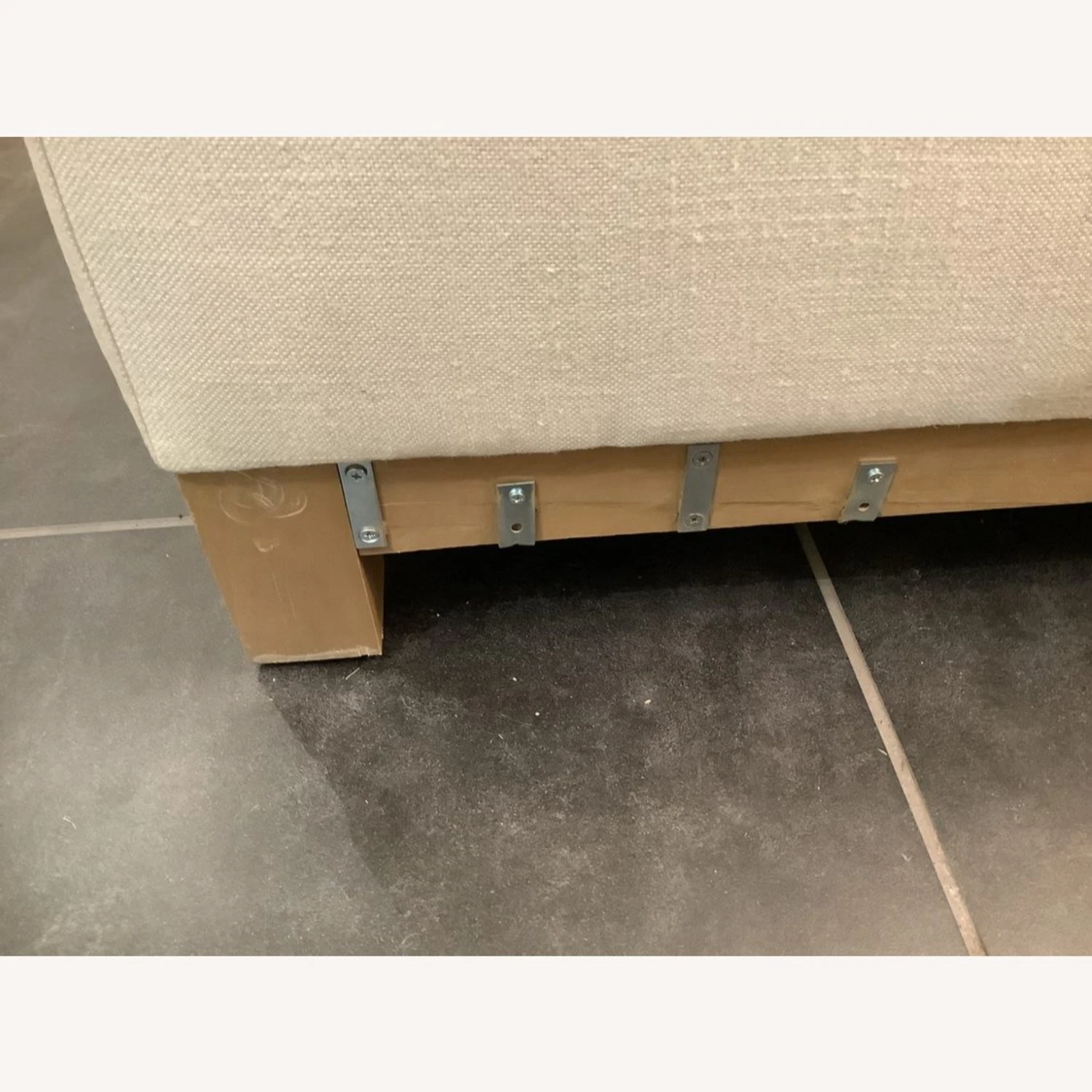 Wear and tear details: Very light stain on top of cushion. One corner of the base of the wooden leg been repaired and has metal brackets to hold it in place.