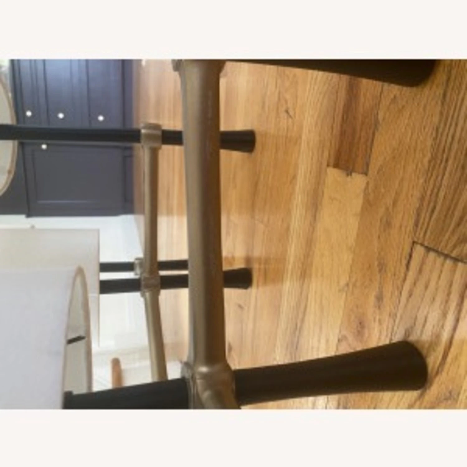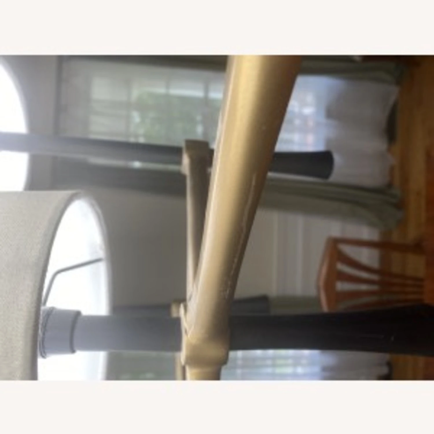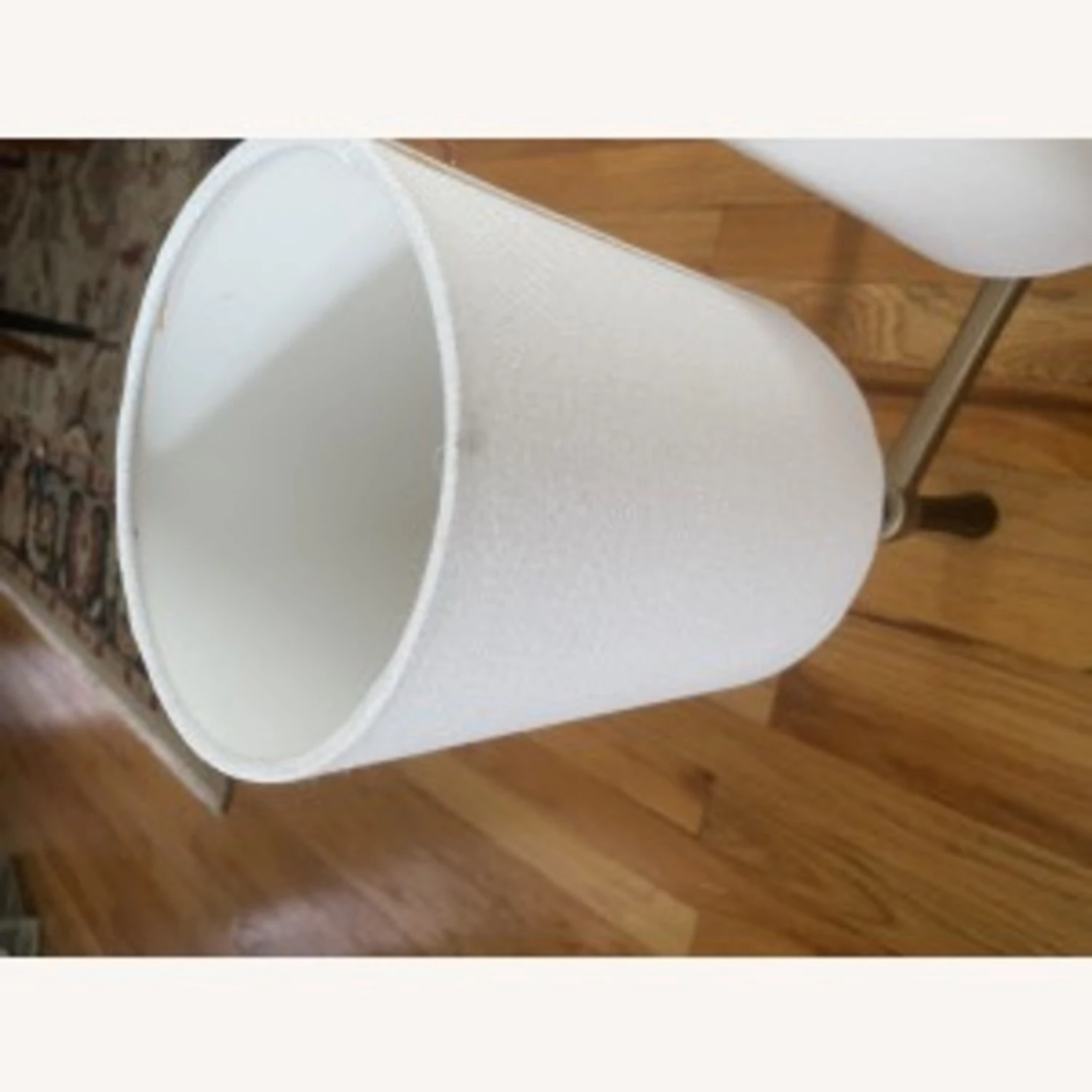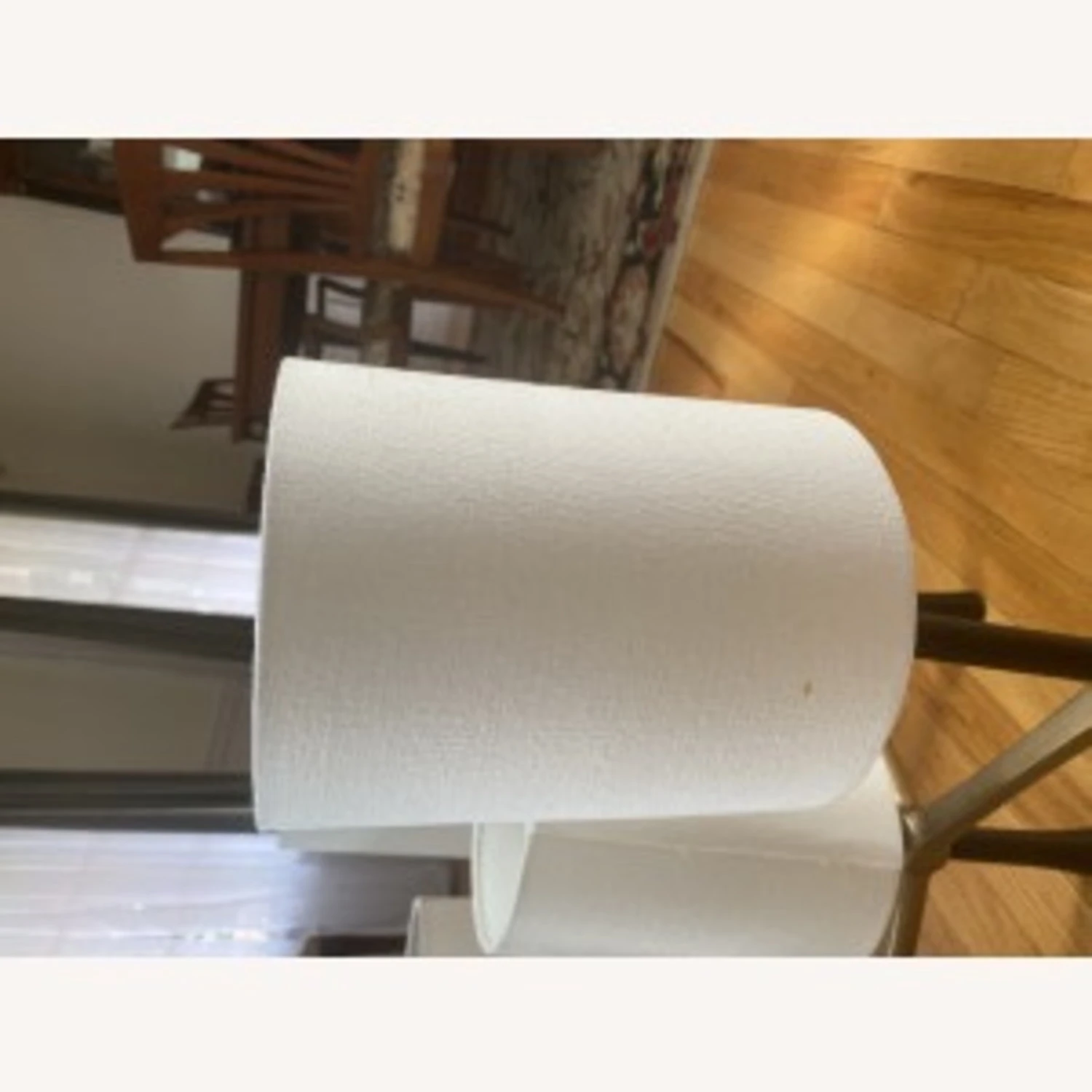 Seller’s Notes: Crafted from brass, steel, iron and aluminum with a burnished brass and bronze finish. Features a cotton linen shade with a styrene interior and an iron frame. Adjustable height. Light bulb(s) are not included. Accommodates twelve 25W, Type B Candelabra bulbs or LED equivalent. Imported. Due to it being a floor model its not brand new or in a box so there are minor imperfections such as scratches and stains. The photos will show a better representation.