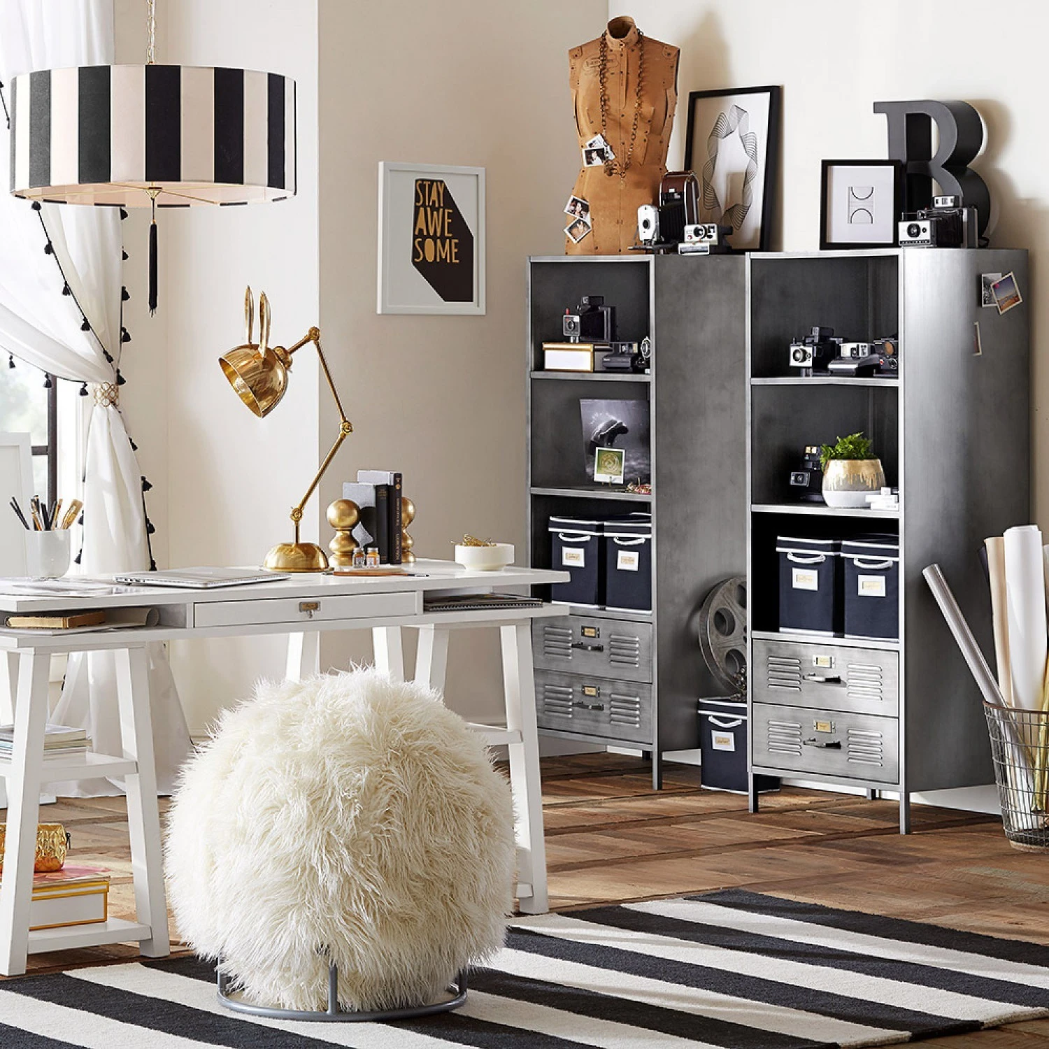 Seller’s Notes: This industrial-style bookcase has the perfect combination of open and closed storage. Pair with the other pieces in our Locker Collection for a room with classic schoolhouse style.