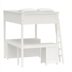Website Description: This space-saving loft brings work and sleep to new heights. Designed to ensure ever-lasting safety and stability, our versatile Beadboard Loft Bed features a full-sized bed up top plus a built-in desk and ample drawer space down below.