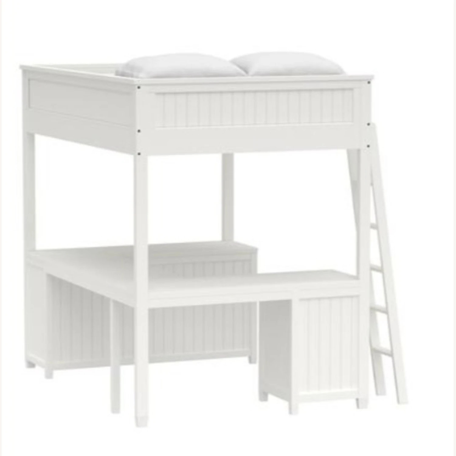 Seller’s Notes: This White Wood Pottery Barn Teen Beadboard Loft Bed was originally purchased for my daughter as it was functional for her schoolwork, and also doubled as an extra dresser in her bedroom. It has served us great for a few years, but we are now remodeling and no longer have a need for the loft bed. It is still in excellent condition. Originally purchased for $3600.